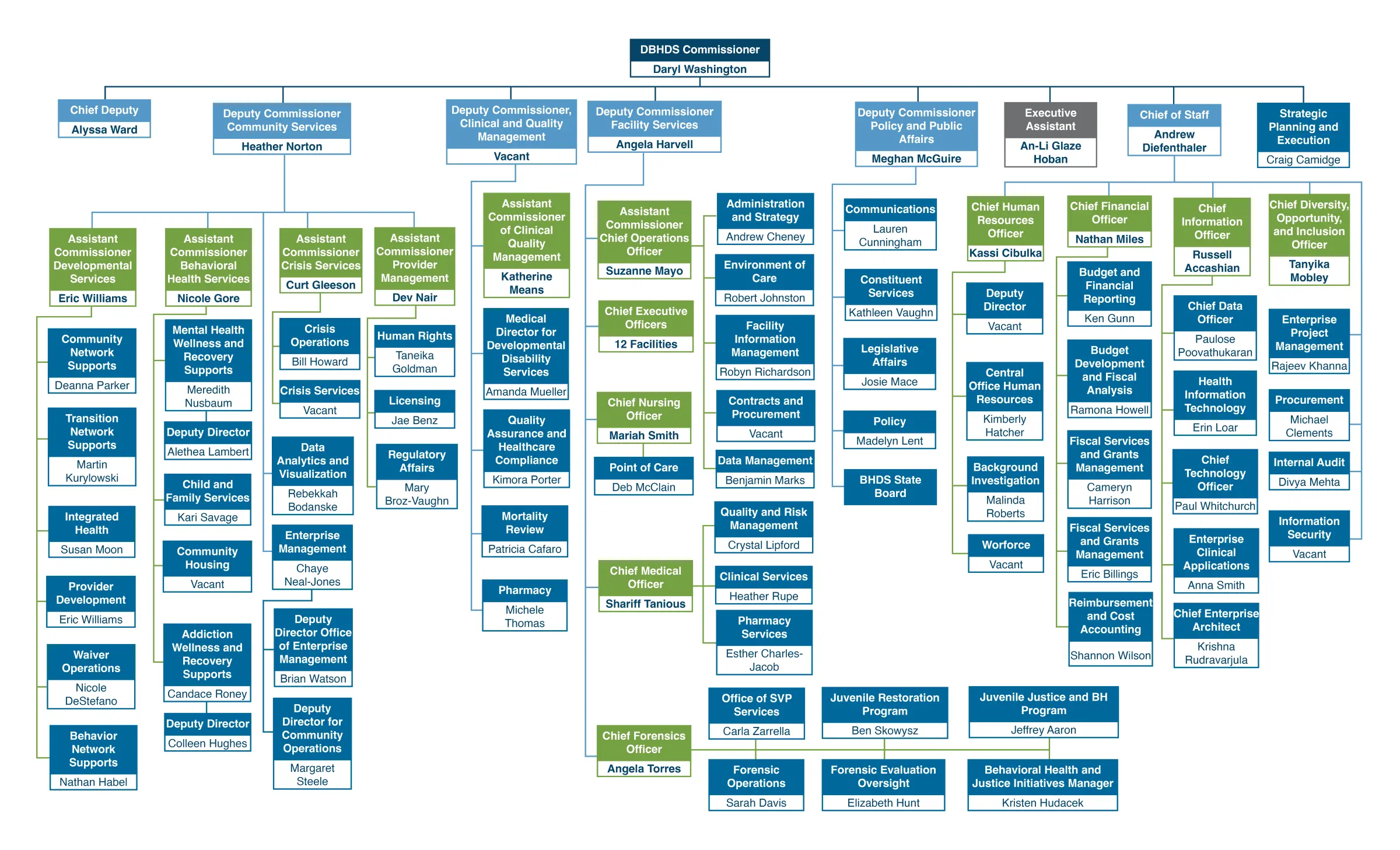 في يناير 2026 ، تم تعيين داريل واشنطن مفوضًا لإدارة الصحة السلوكية وخدمات التنمية في فرجينيا من قبل الحاكمة أبيجيل سبانبرجر. قبل انضمامه إلى DBHDS، شغل داريل منصب المدير التنفيذي لمجلس خدمات مجتمع فيرفاكس-فولز تشيرش (CSB)، وهو المنصب الذي تم تعيينه فيه في 2018. في هذا الدور، كان مسؤولاً عن العمليات الشاملة في CSB وهي وكالة خدمات الرعاية الصحية السلوكية العامة وخدمات الإعاقة التنموية لمقاطعة فيرفاكس ومدينتي فيرفاكس وفولز تشيرش. يقدم CSB خدماته لما يقرب من 22 و 000 فرداً سنوياً، ويعمل به أكثر من 1 و 300 فرداً بدوام كامل وجزئي، وميزانية تزيد عن 200 مليون دولار. يتمتع داريل بخبرة 32 عامًا في مجال الرعاية الصحية السلوكية وكان أخصائيًا اجتماعيًا سريريًا مرخصًا لسنوات 30 الماضية. قبل اختياره كمدير تنفيذي، شغل داريل منصب نائب مدير العمليات السريرية في مركز خدمات الصحة العقلية. في إطار دوره كنائب للمدير، كان داريل مسؤولاً عن جميع العمليات السريرية في الوكالة وقاد مجموعة تضم أكثر من موظفي 700. خلال مسيرته المهنية، عمل داريل أيضاً في مدارس مقاطعة فيرفاكس العامة كأخصائي اجتماعي مدرسي وفي العديد من منظمات الرعاية الصحية السلوكية الخاصة. حصل على تدريب سريري لتقديم الخدمات للشباب والمراهقين والبالغين والأزواج.