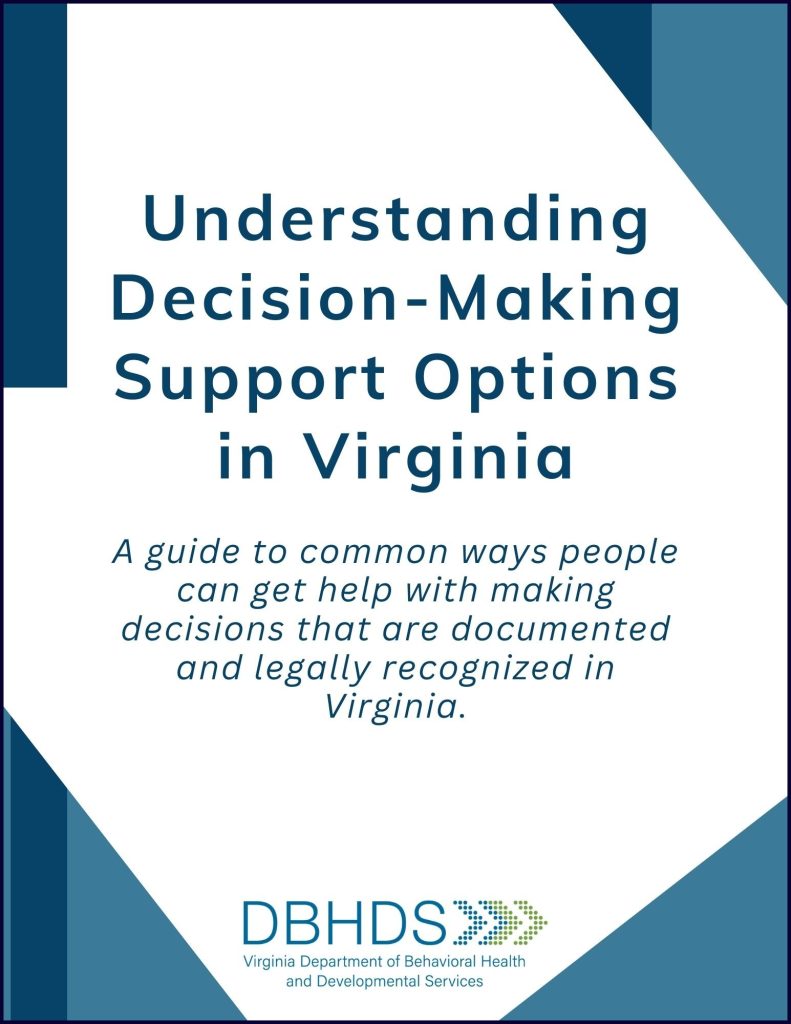 تعترف ولاية فرجينيا الآن رسميًا باتفاقيات اتخاذ القرار المدعوم كبديل لخيارات اتخاذ القرار البديلة الأكثر تقييدًا، مثل الوصاية القانونية(قانون فرجينيا § 37.2-314.3..). اتفاقيات اتخاذ القرار المدعوم هي وسيلة للبالغين ذوي الإعاقات النمائية الذين يعيشون في فرجينيا لتوثيق متى يريدون الحصول على الدعم في اتخاذ القرارات، وكيف يريدون الحصول على الدعم، ومن يريدون مساعدتهم. تمنح اتفاقيات اتخاذ القرار المدعوم للأفراد ذوي الإعاقات النمائية القدرة على تلقي الدعم في اتخاذ خيارات مختلفة في حياتهم، مع الاحتفاظ بجميع حقوقهم، بما في ذلك الحق في اتخاذ قراراتهم بأنفسهم.
